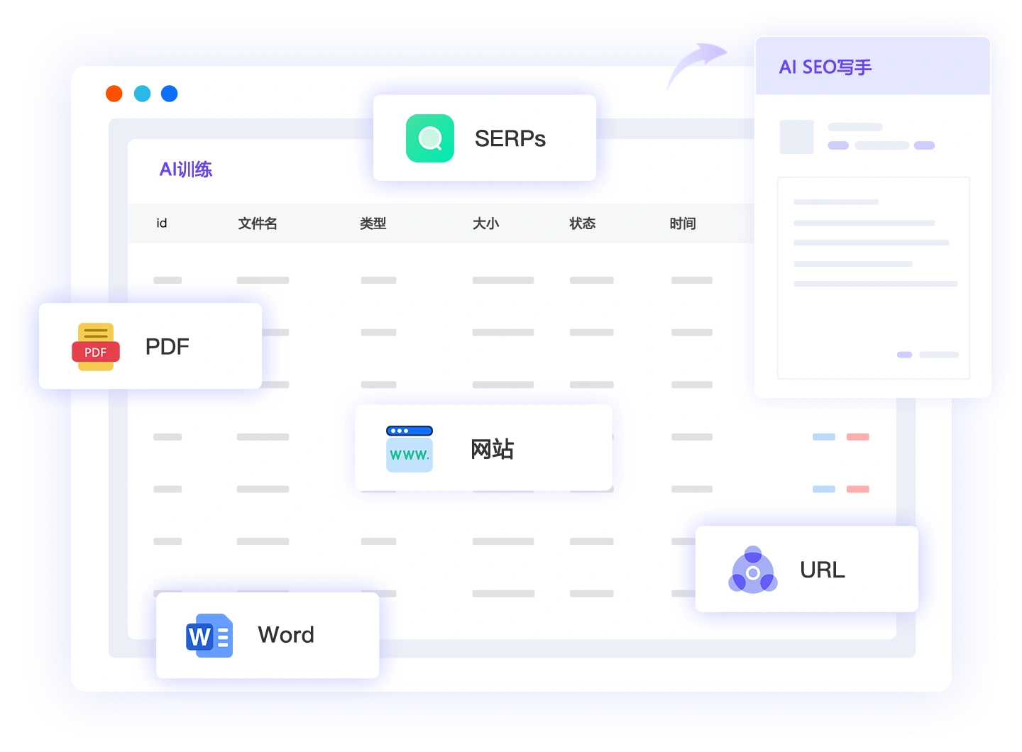 支持使用word、URL等各种类型的内容进行AI训练