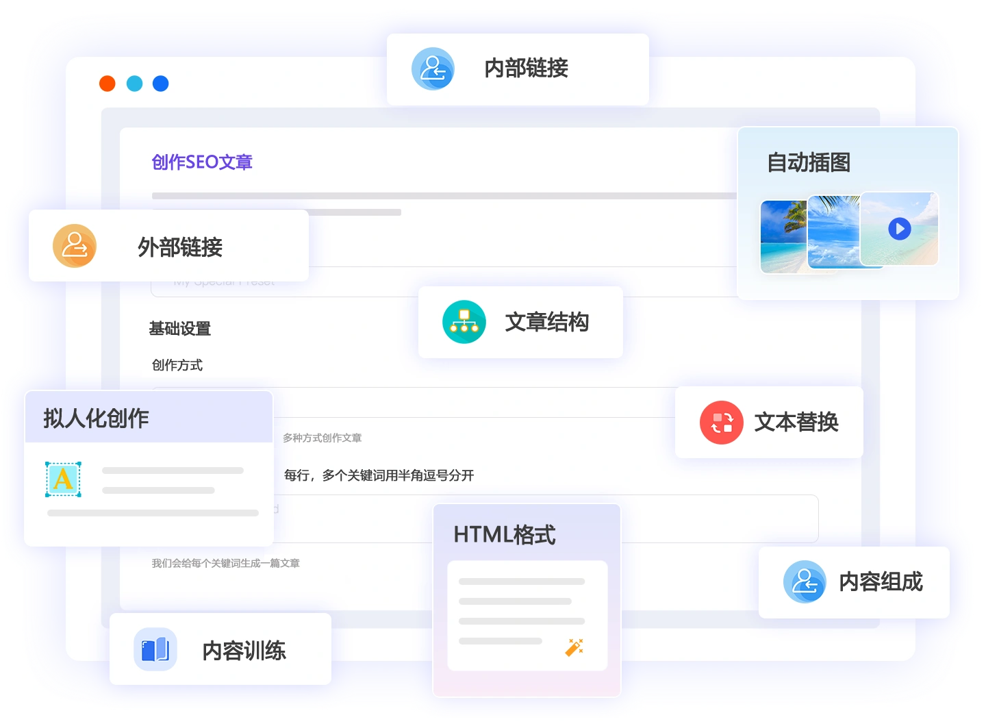 可以使用各种类型的文档、网站内容、竞品内容等各种资料对AI进行训练,把AI训练成您的专属“文案编辑”,创作高质量的SEO文章